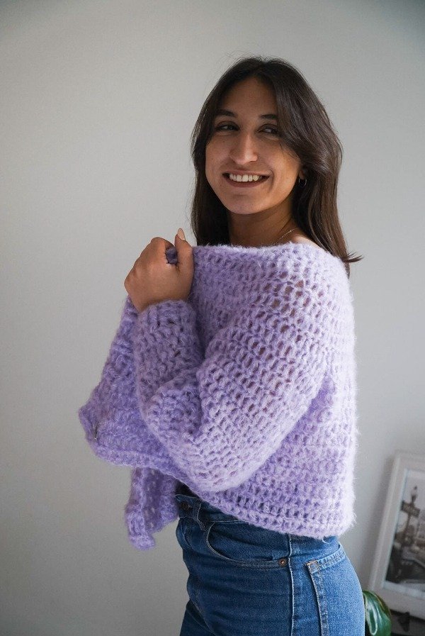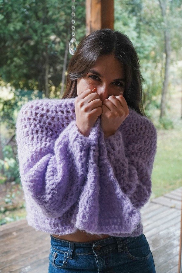 Tejido en Simil Mohair, inspirado en la lavanda, no solo por el color sino por las sensaciones a las que te lleva sentir la prenda en la piel. El unico bomber en simil mohair de MLHMM Va hasta un Talle M